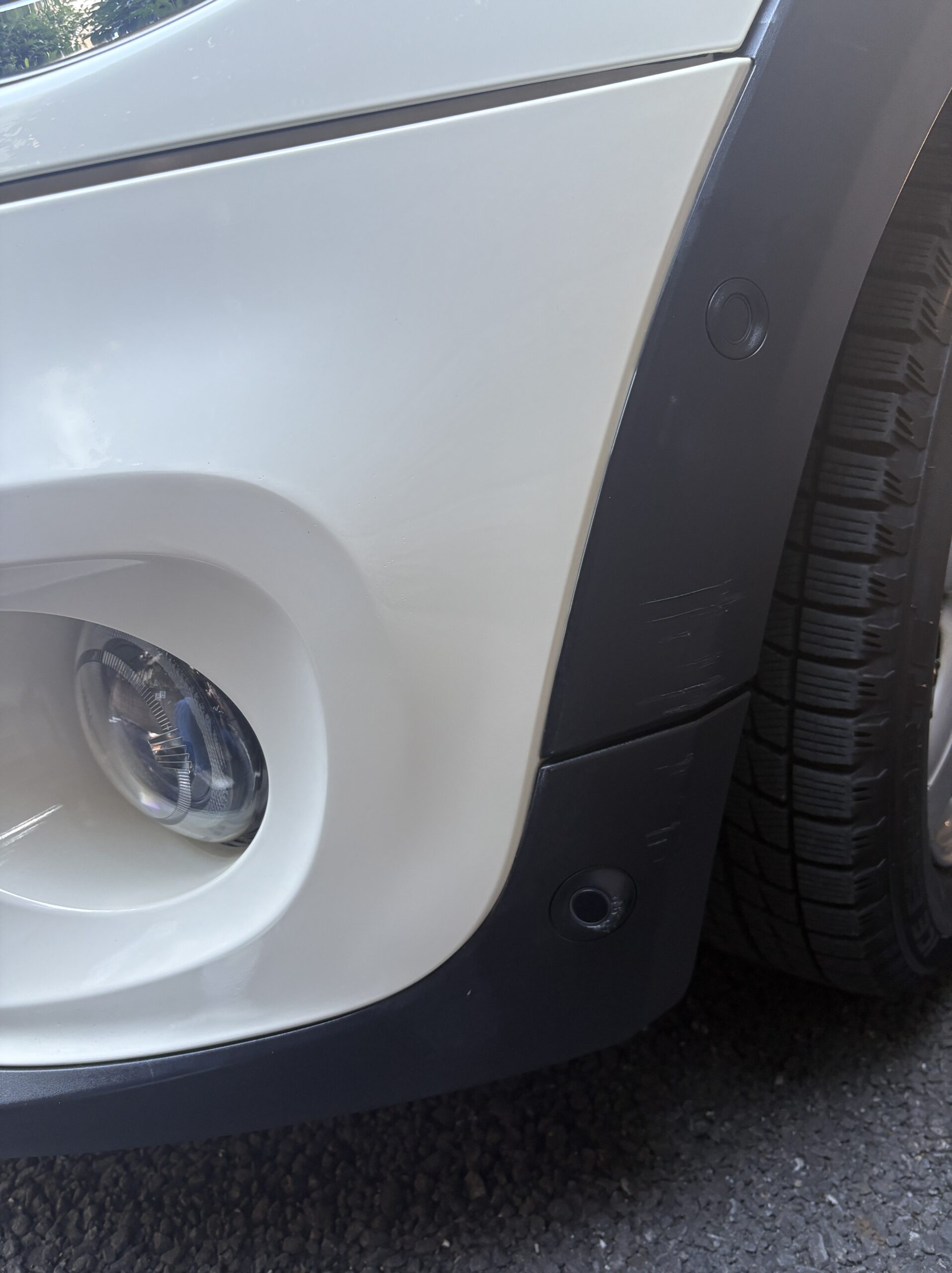 フロントバンパーの塗装部分には擦り傷があり、あわせて樹脂パーツ部分にもキズが確認できる状態でした。目立つキズのため、できるだけきれいに直したいとのご希望でした。